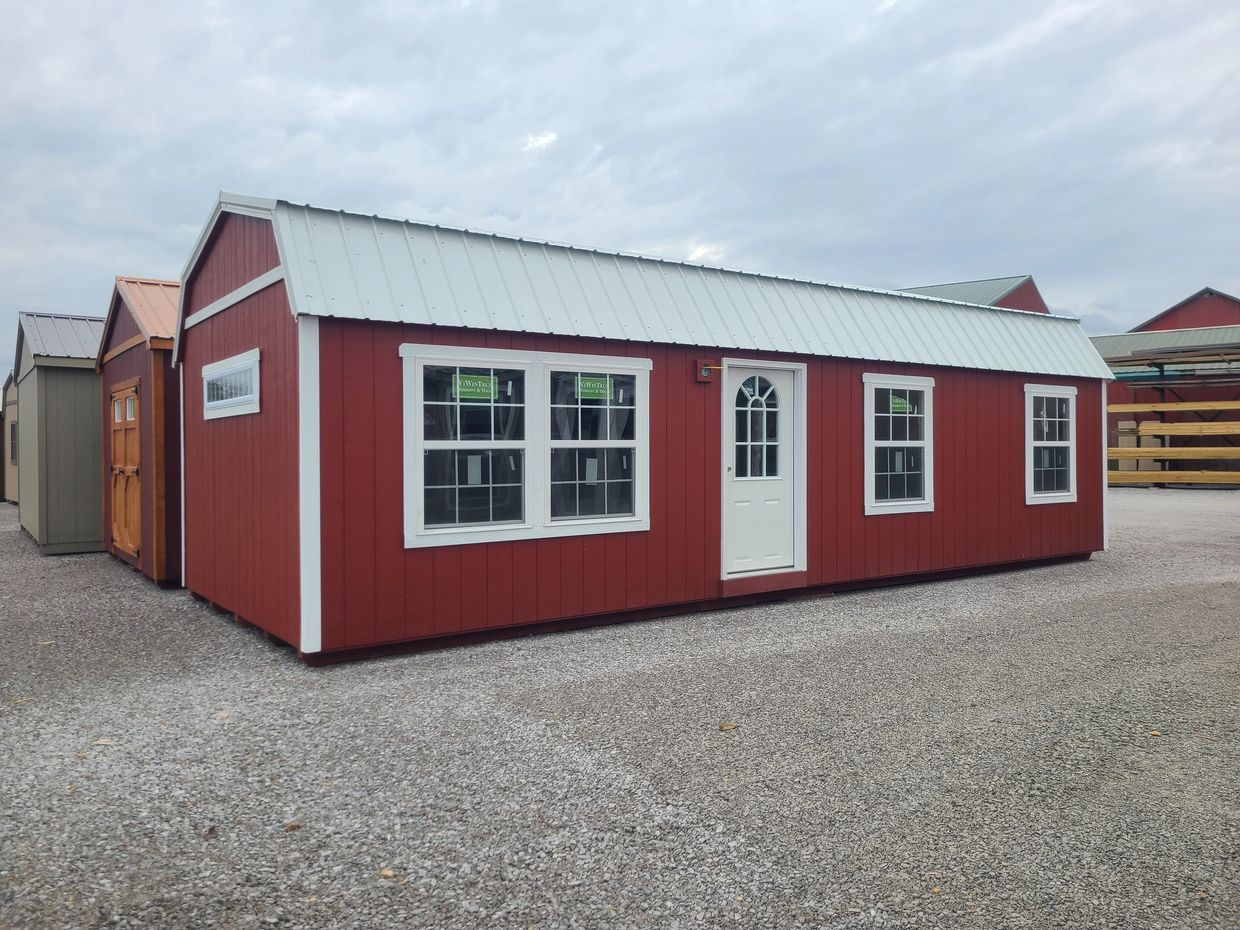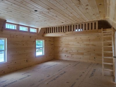 These building come standard with one 9lite door, (2) 2'x3' insulated windows, 6'7" walls, a 6" overhang and a 5 pitch roof. These will give you a roomier loft.